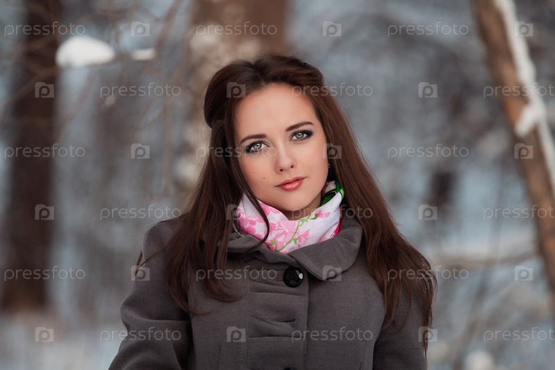 Красивая молодая девушка в зимнем лесу