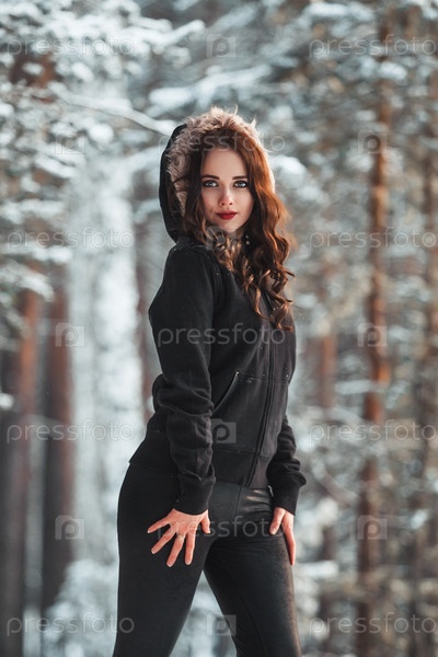 Красивая молодая девушка в зимнем лесу