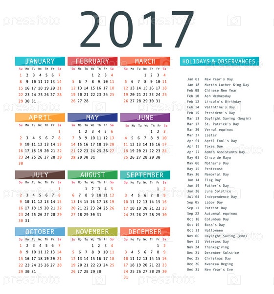 Шаблон календаря на 2017 год