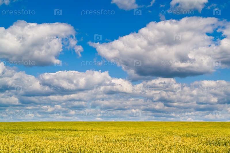 Желтое поле под облаками