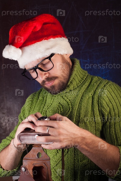 Портрет мужчины в рождественской шапке