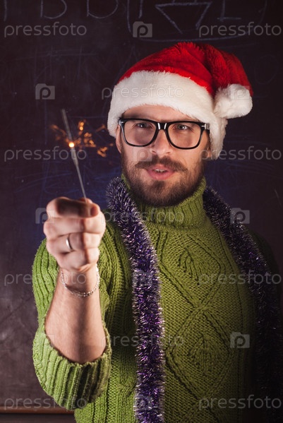 Портрет мужчины в рождественской шапке