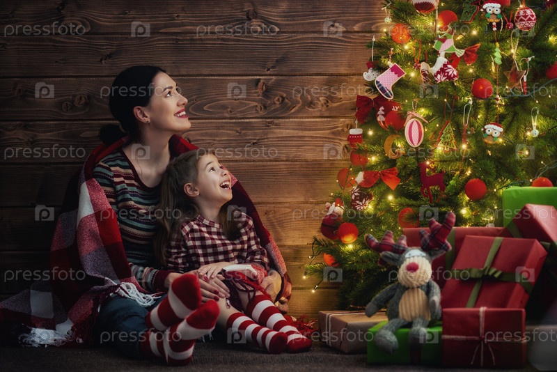 Мать и дочь возле елки