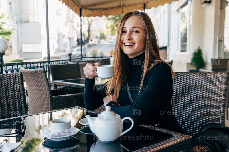 Девушка в кафе на открытом воздухе