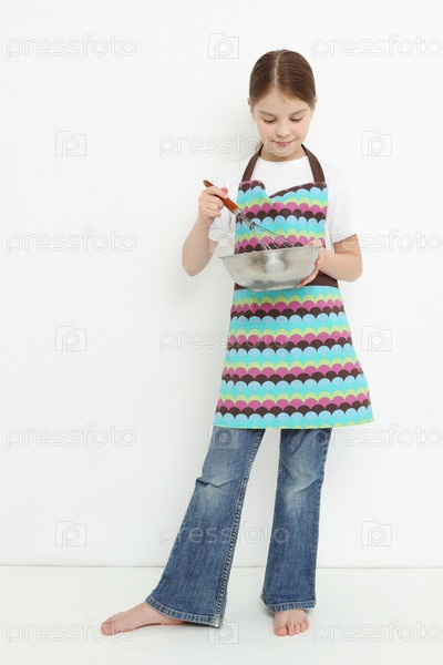 Милая маленькая девочка готовит еду