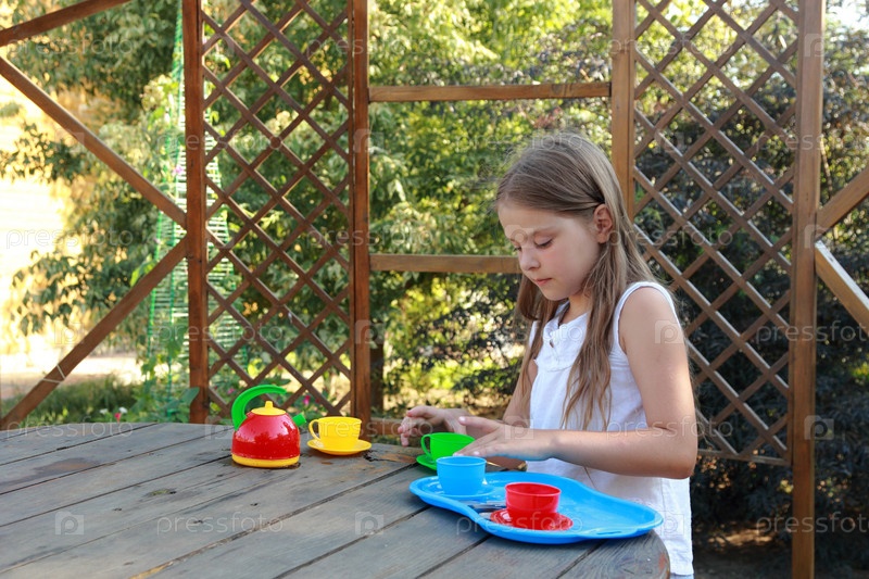Девочка играет за столом