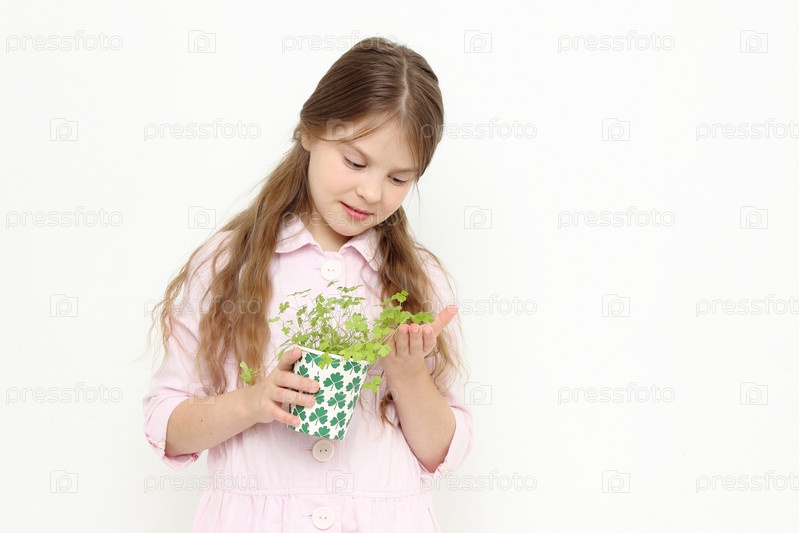 Маленькая девочка с растением в горшочке