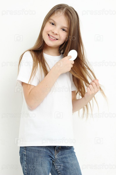 Девочка расчесывает волосы