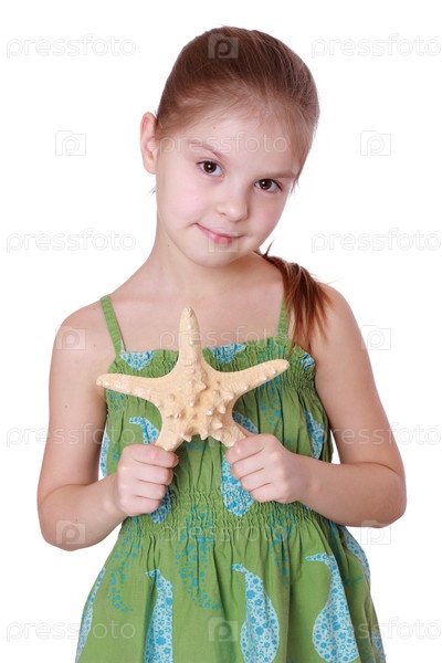 Милая маленькая девочка с морской звездой