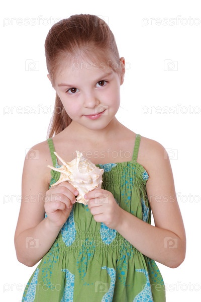 Милая маленькая девочка с морской звездой