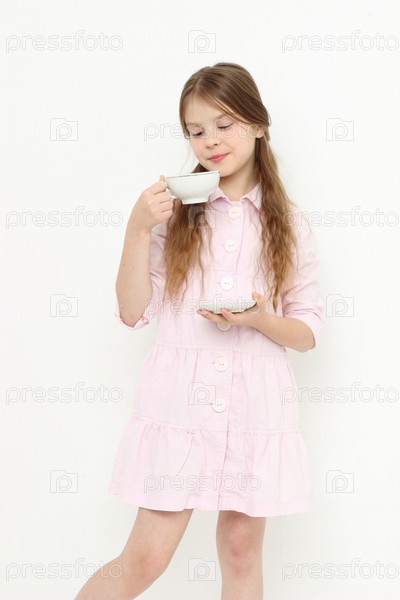 Маленькая девочка держит чашку чая