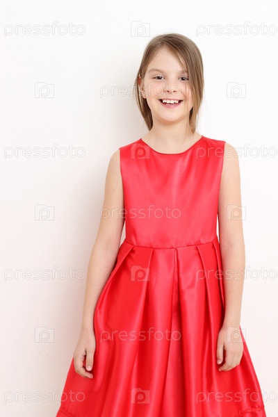 Счастливая девочка в красном платье