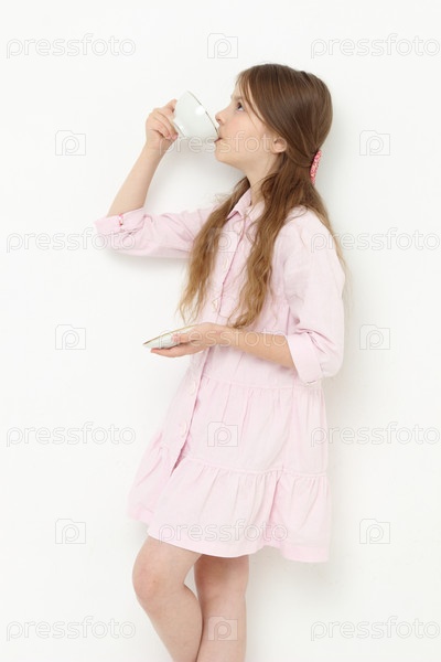 Девочка пьет чай