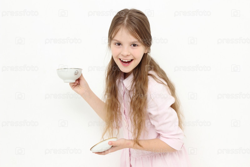 Счастливая девочка с чашкой чая