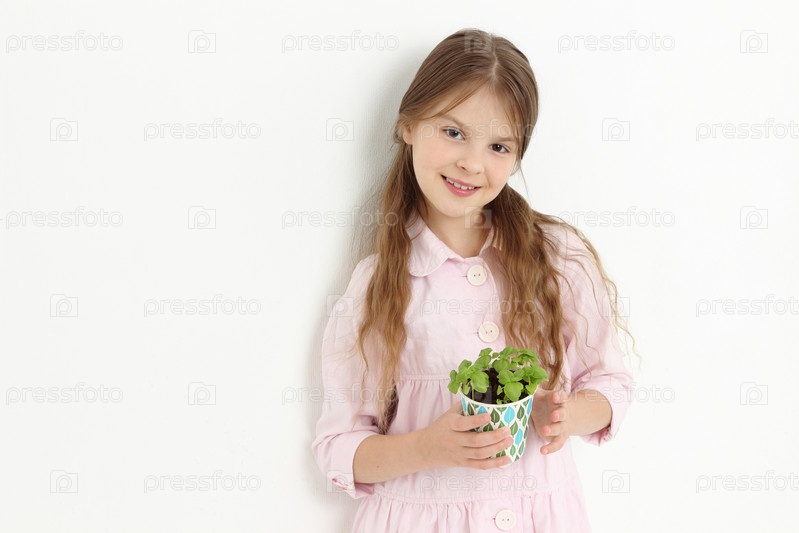 Симпатичная девочка с растением