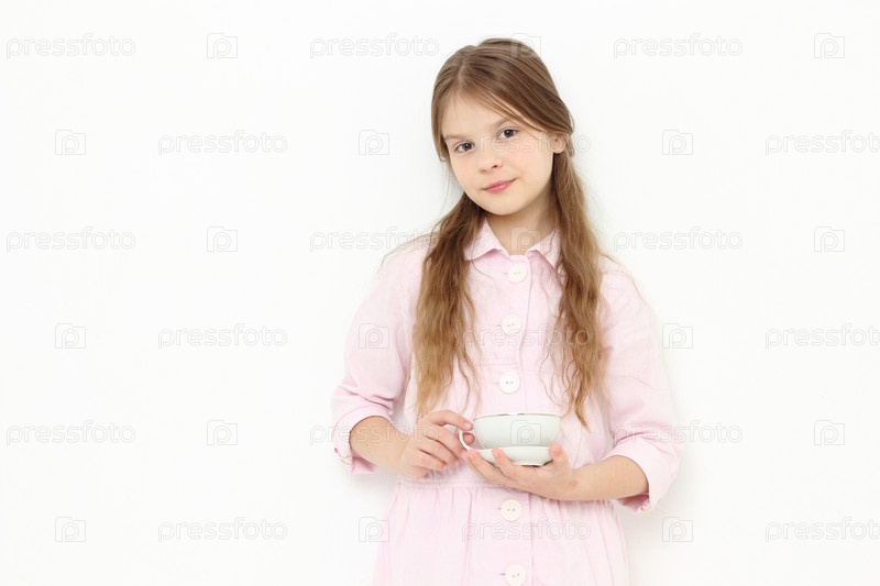 Маленькая девочка держит чашку