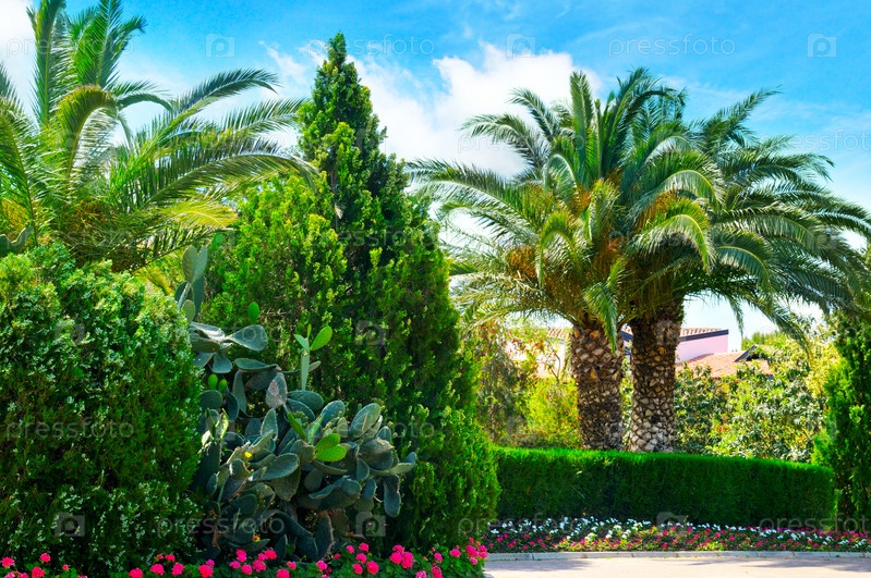Красивый парк с пальмами