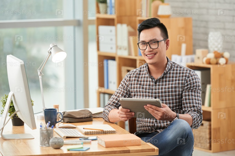 Человек с планшетным компьютером
