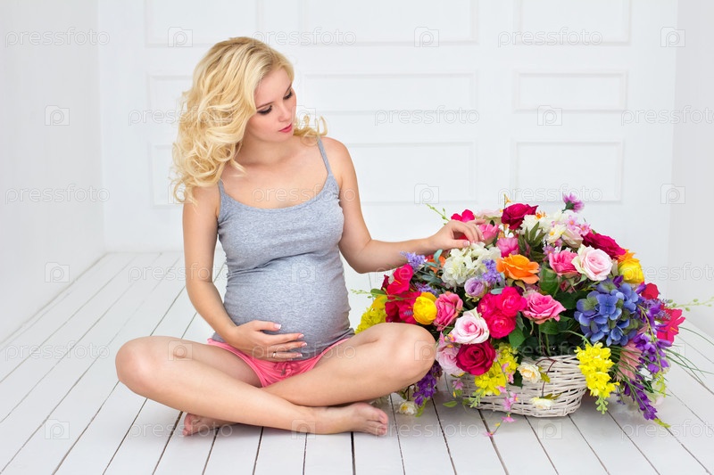 Беременная женщина с цветами