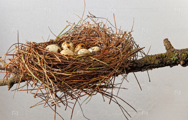 Гнездо с перепелиными яйцами