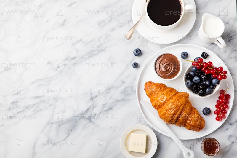 Завтрак с круассаном и чашкой кофе