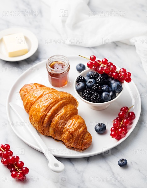 Завтрак с круассаном и чашкой кофе