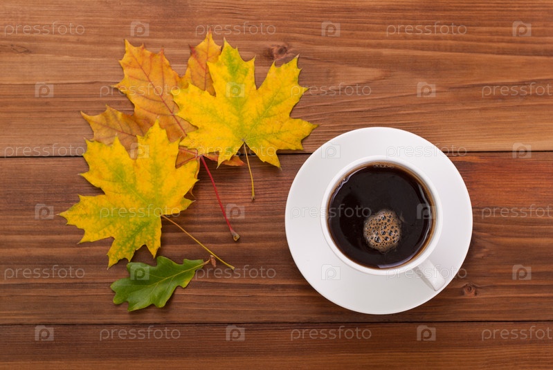 Чашка кофе и осенние листья