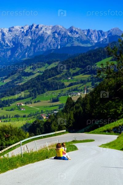 Сидя на дороге в Альпах
