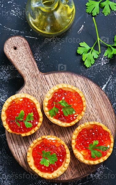 Вкусные тарталетки с красной икрой
