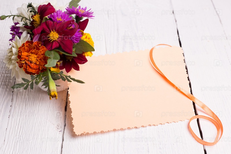 Осенние цветы и поздравительная карточка