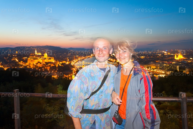 Пара туристов на фоне ночного Будапешта