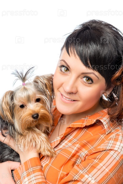 Молодая красивая женщина со щенком