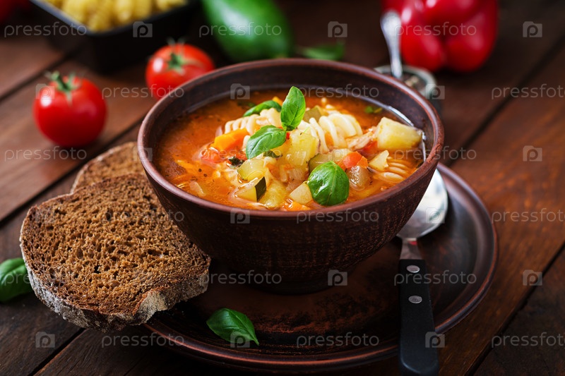 Минестроне - итальянский овощной суп с макаронами