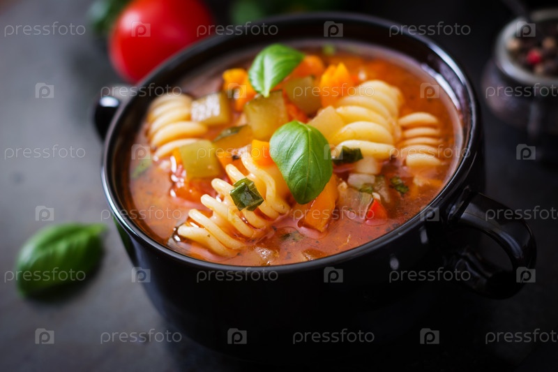Минестроне - итальянский овощной суп с макаронами