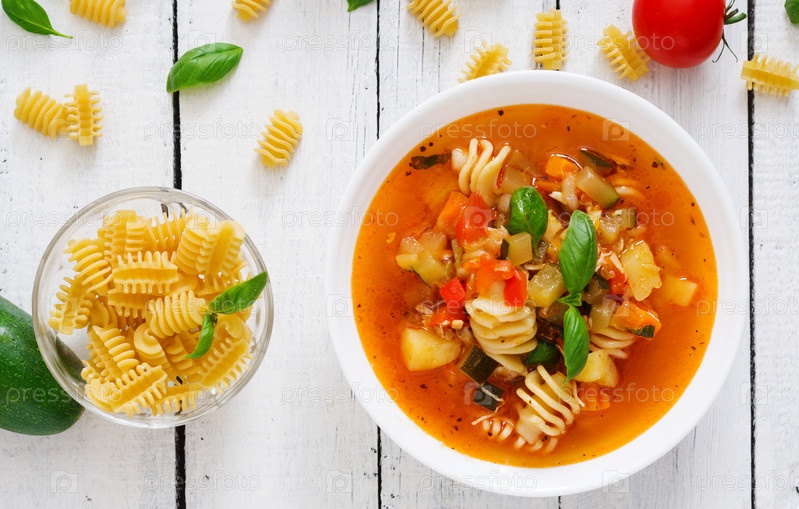 Минестроне - итальянский овощной суп с макаронами