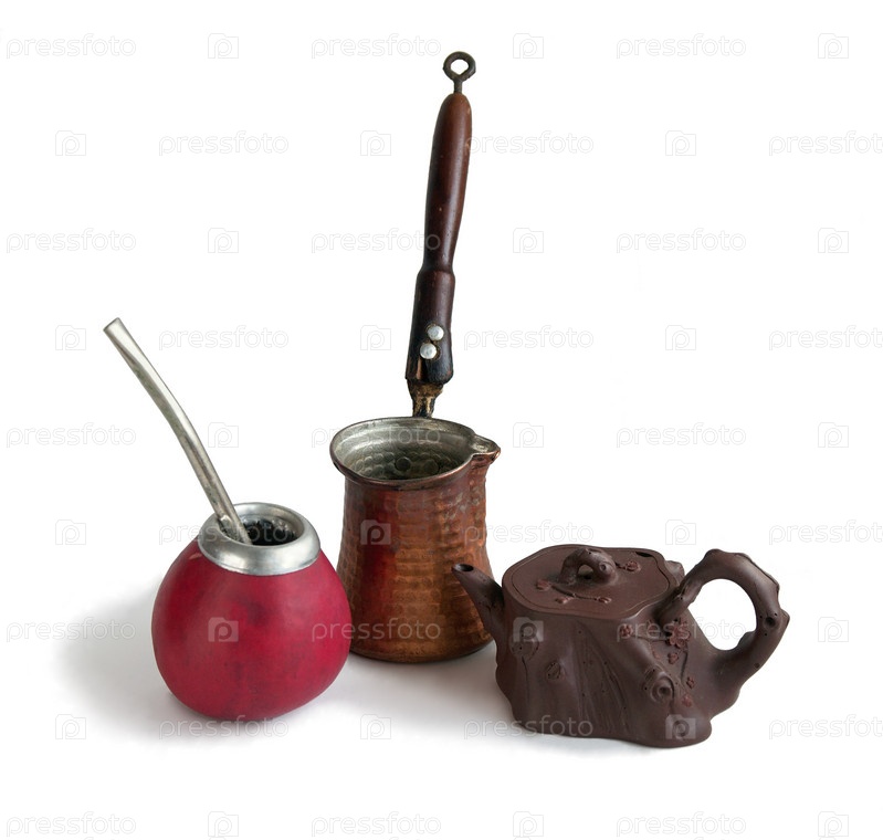 Калабас, турка и чайник на белом фоне
