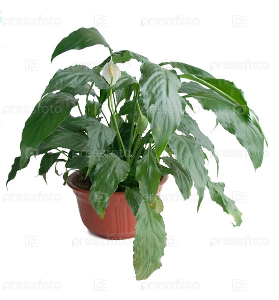 Спатифиллум Уоллис (Spathiphyllum wallisii) на белом фоне