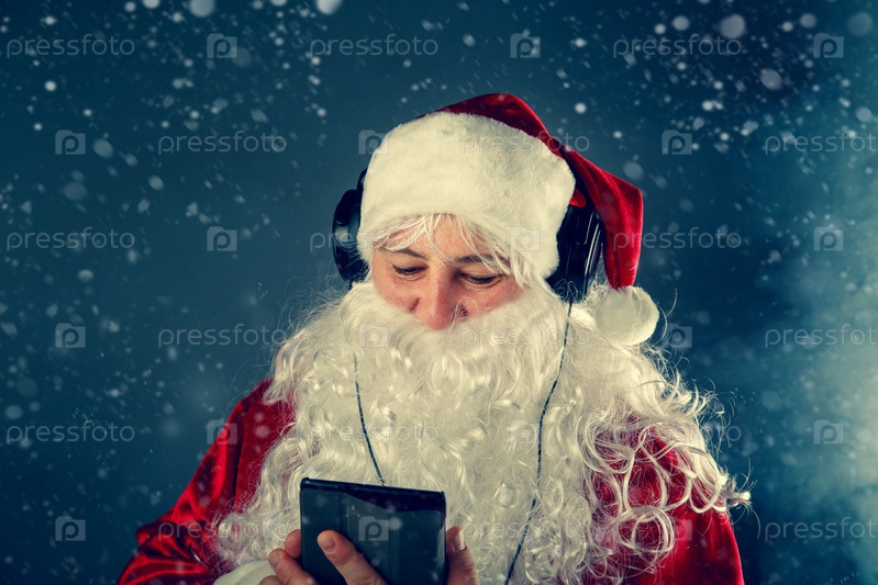 Санта-Клаус слушает музыку