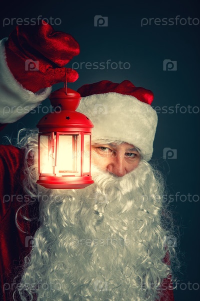 Портрет Санта-Клауса с фонарем