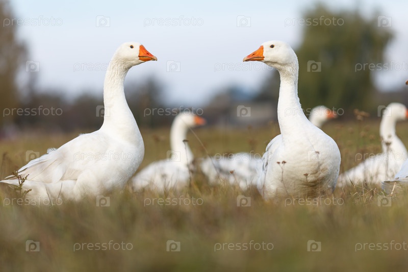 Белые гуси на лугу