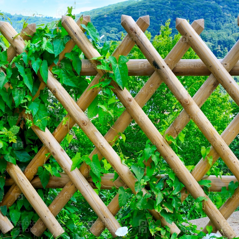Деревянный забор и зеленые растения