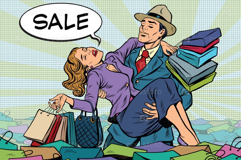 Ретро мужчина спасает женщину от распродаж