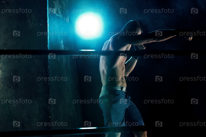 Боксер в темной студии