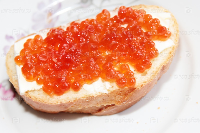 Бутерброд с красной икрой лосося