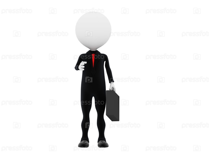Деловой человек с портфелем протягивает руку для рукопожатия, 3D