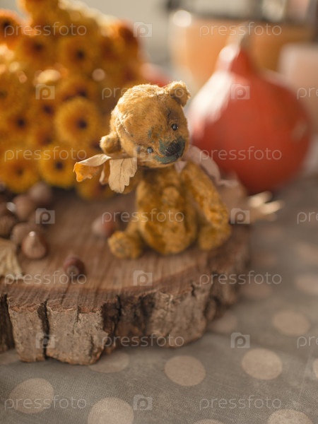 Плюшевый медведь и осенняя листва