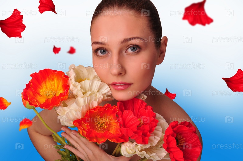 Портрет красивая девушка с цветами