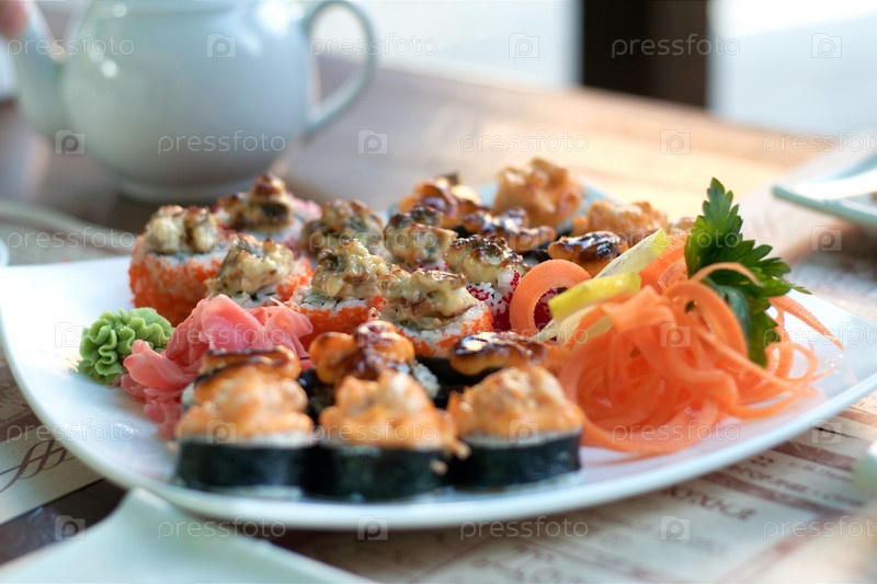 Теплые роллы на тарелке