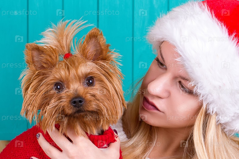 Девушка с собакой на Рождество