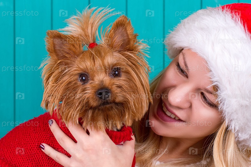 Девушка с собакой на Рождество